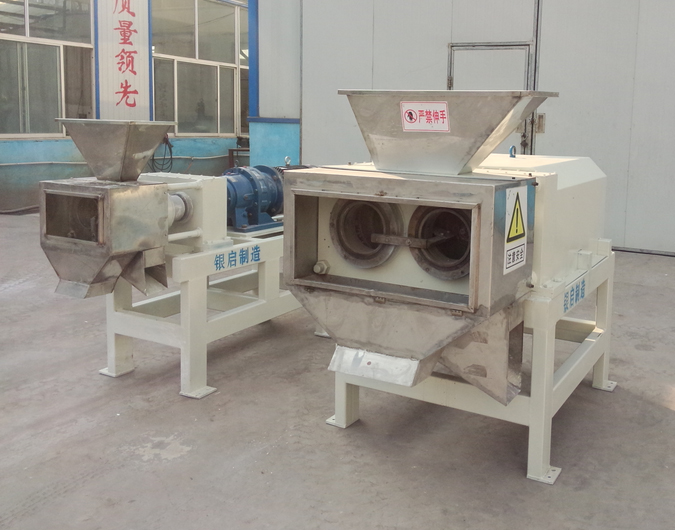 對齒造粒機是有兩個非標空心齒輪(齒底鉆孔,孔徑根據造粒要求而定),相互咬合轉動,物料通過齒輪的齒槽,在相互咬合產生的擠壓作用下,從齒底的孔眼中擠出。再有齒輪內腔中的切刀把物粒切斷,形成顆粒。
